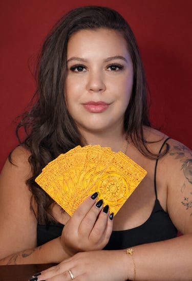 Transformou o tarô em sua profissão, ultrapassando R$100 mil em faturamento, e hoje ensina outras mulheres a fazerem o mesmo. Sua primeira turma já conta com alunas atuando e vivendo do tarô — e agora ela abre as portas para uma nova jornada de formação profissional.